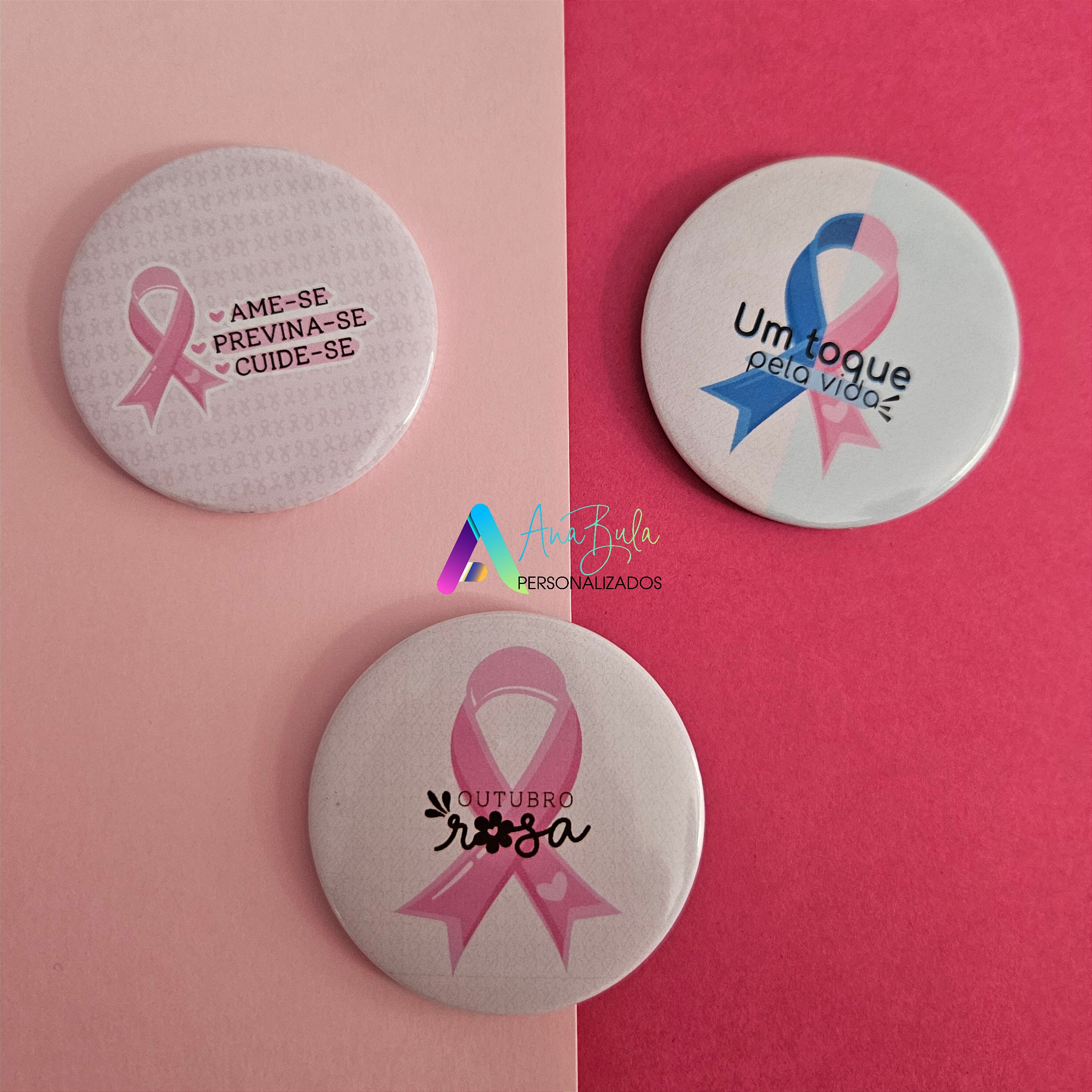Bóton alfinete Outubro Rosa 55mm 50UN